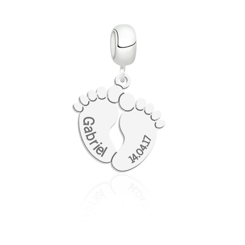 Berloque Personalizado com 2 Pezinhos com Nome e Data de Nascimento | Prata