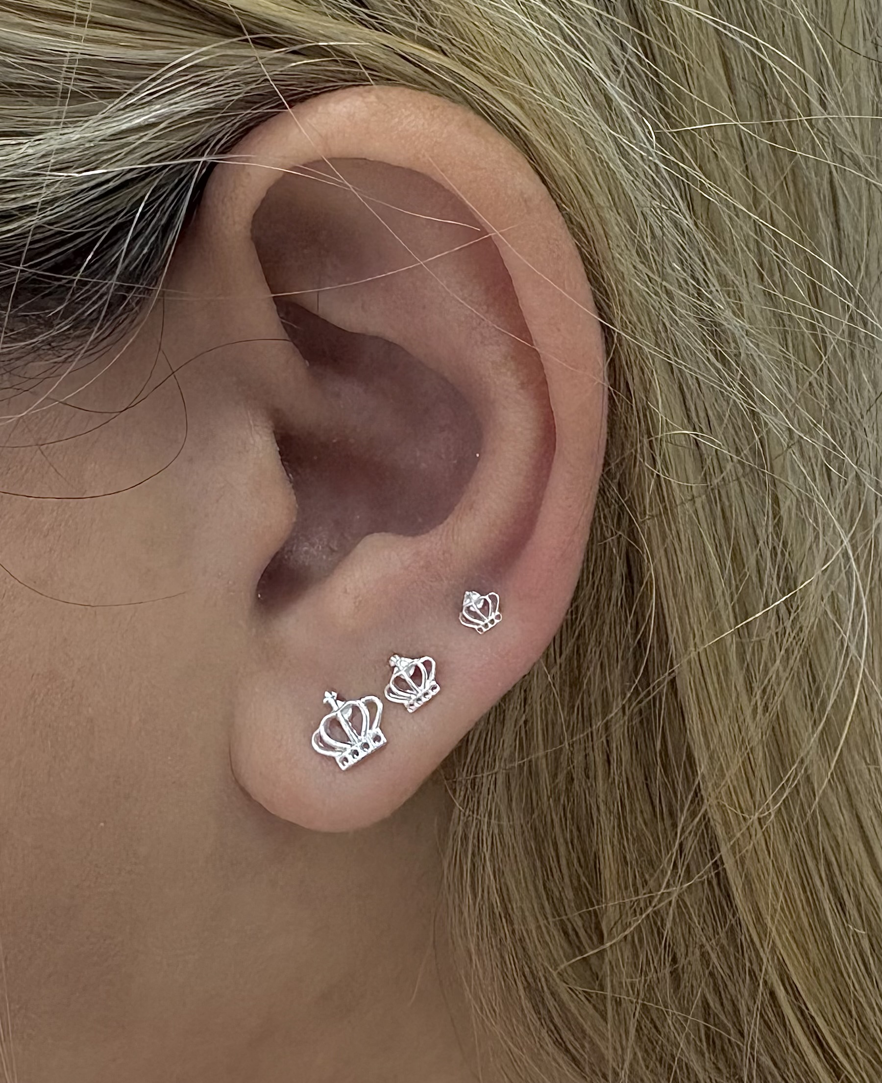 Trio brincos coroa Prata 925